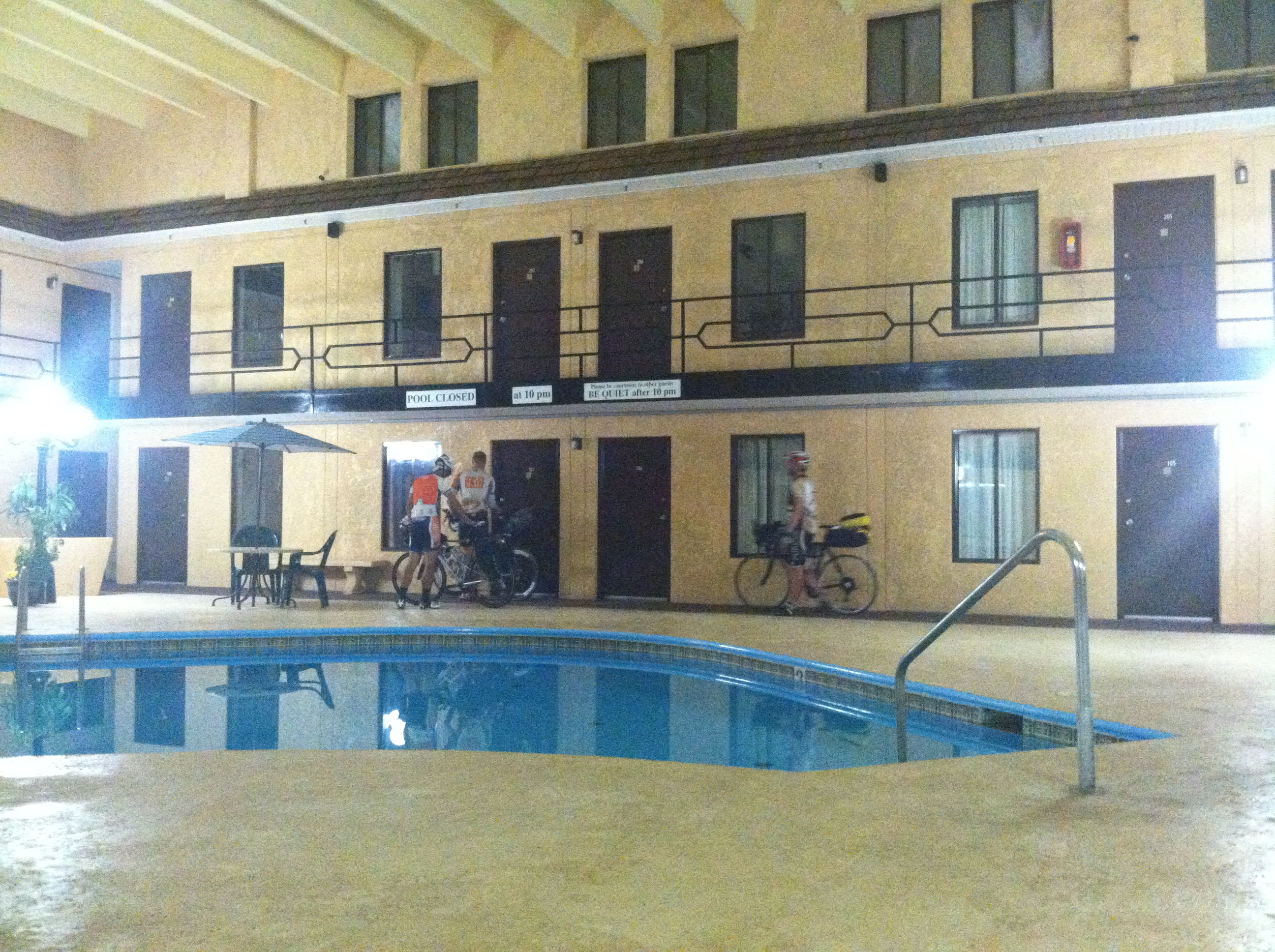 That night at 1am in the morning, the fourth place cyclist of the TransAm Bike race arrived at Newton Bike Shop. We stayed up and waited, so we didn’t sleep much. Luckily we were taking another rest day.