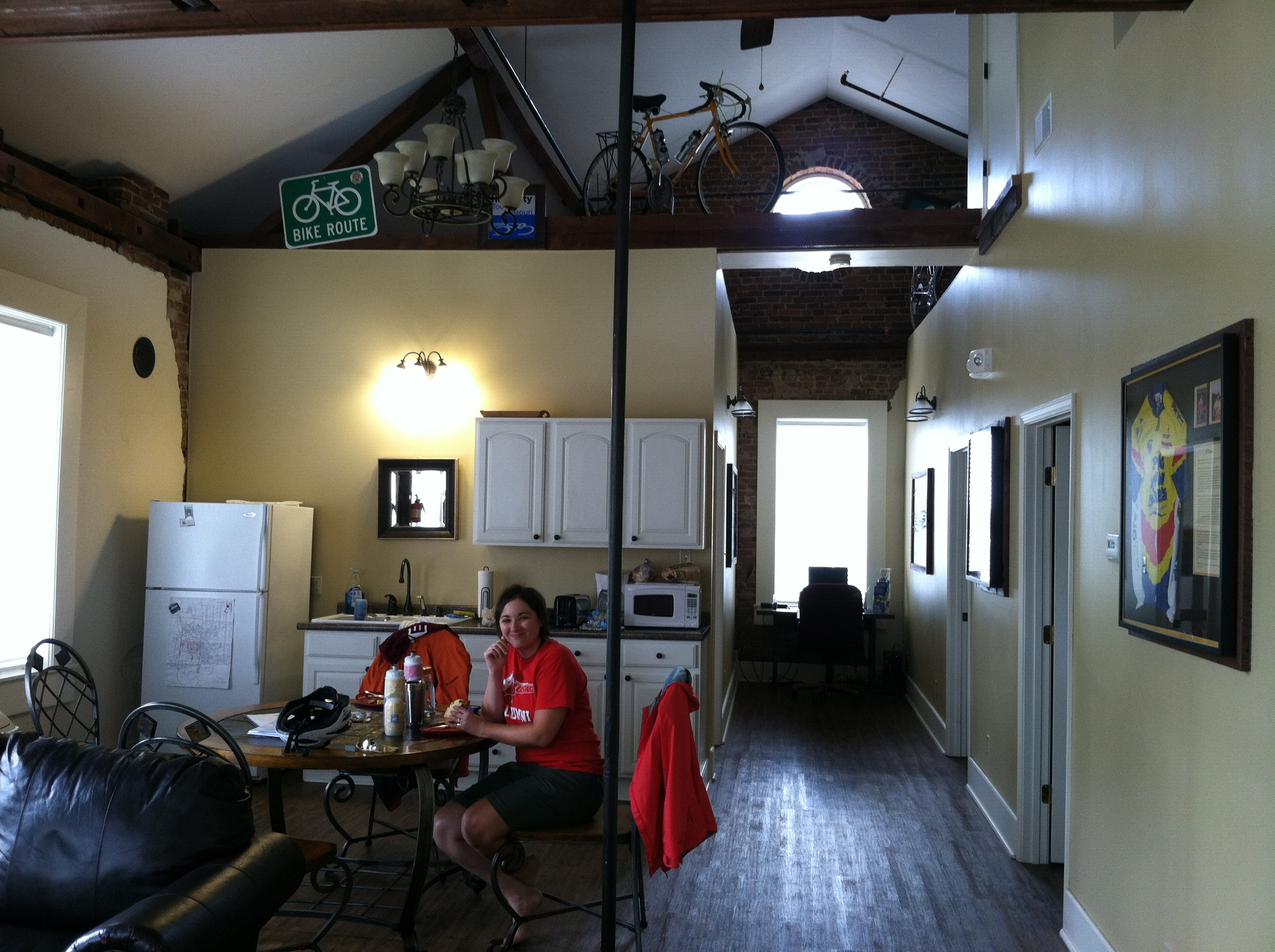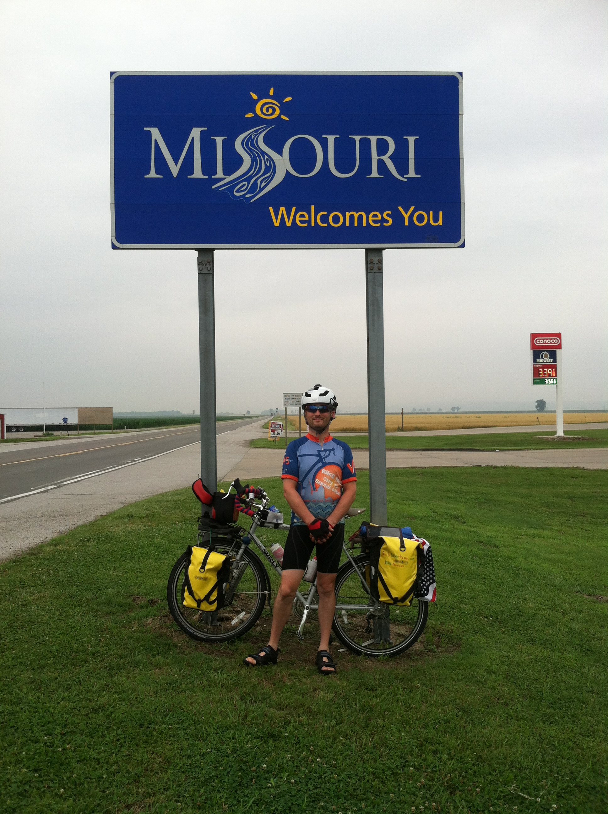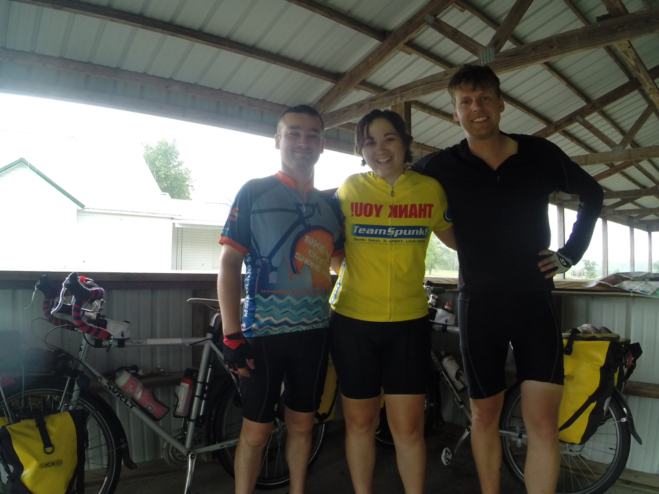 Philipp caught up with us about ten or fifteen miles from Carbondale. The three of us then deviated slightly off the TransAm route to go direct to our hotel in Carbondale. On the way, we missed a turn that was unmarked. About a half mile down the road we realized we missed our turn and so we turned around. This nice man passed us on the road but pulled over ahead of us to talk with us. He was aware of the bike race across America and was interested in our trip as well. He also told us where the road was that we missed and how to get to the hotel.
