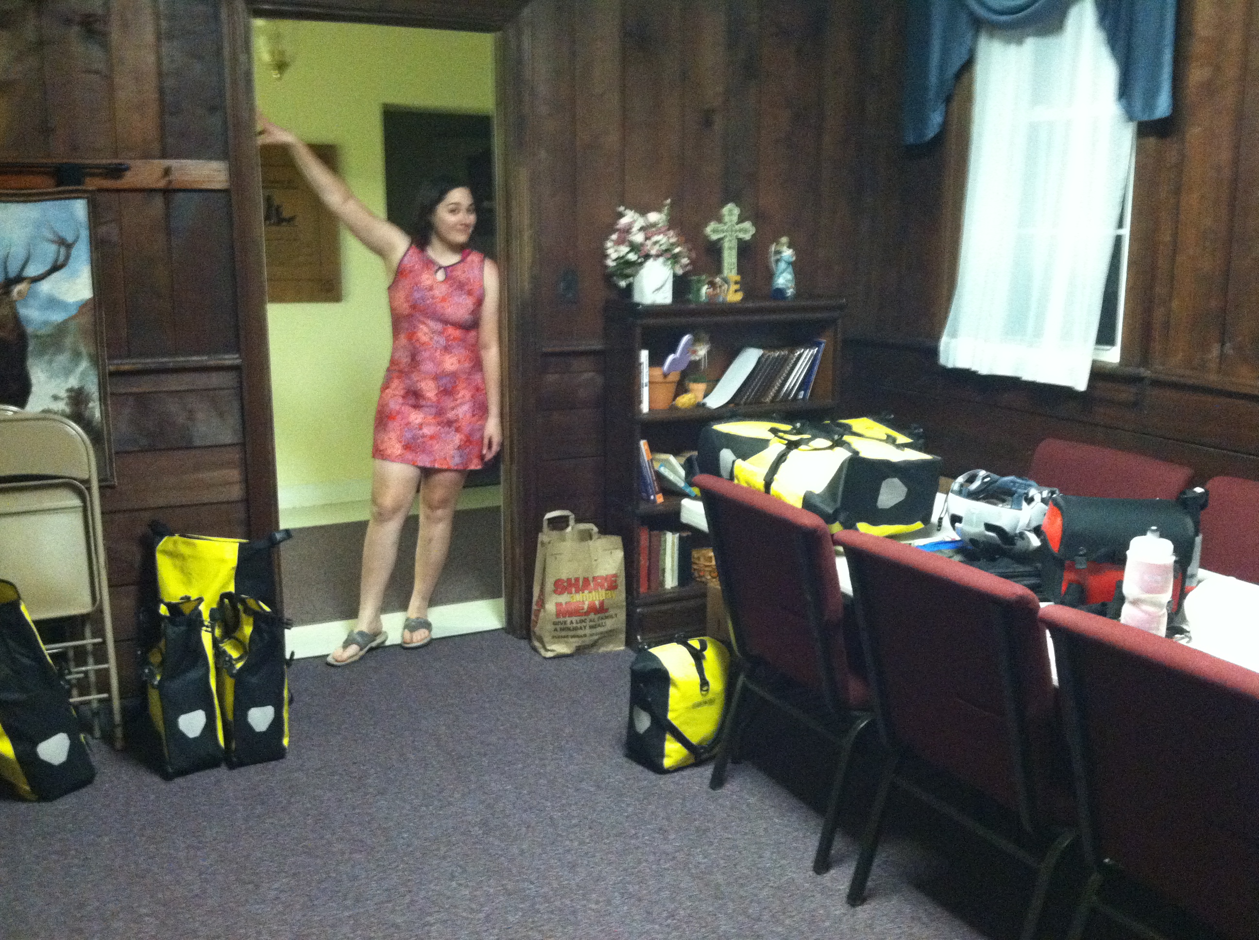 He drove us to “The Bike House” which had been owned by June Curry, the world famous “Cookie Lady”. She passed away back in July 2012. She had been part of the TransAmerica trail since it’s inception in 1976. Someone else now owns the Bike house and keeps it open for Cyclists. The “Bike House” is actually the entire first floor of the two story structure and it has four large rooms plus a kitchen and bathroom. The kitchen is stocked with food for the cyclists (which we took advantage of) and a bathroom. They have an outdoor shower which had not yet been hooked up since it was too early in the season.