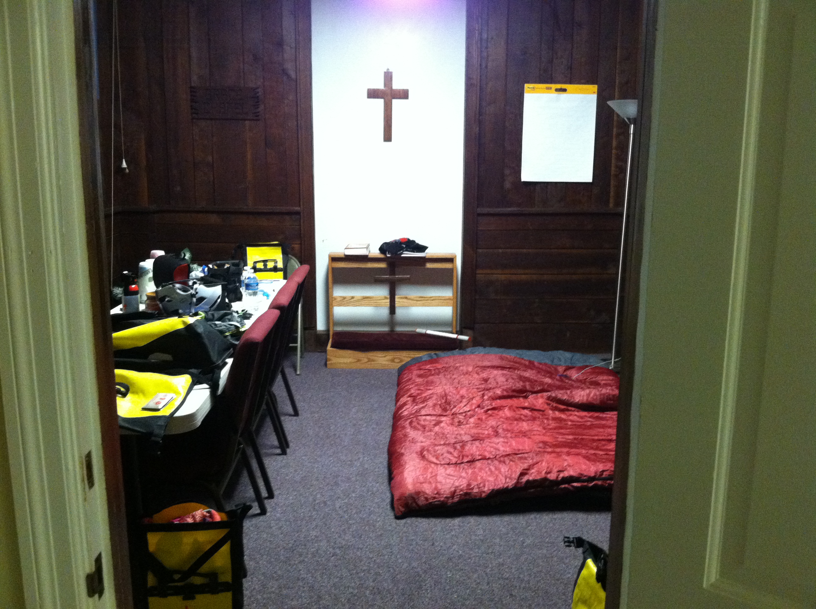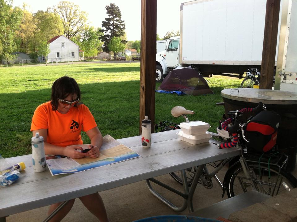 Across the street was the White Hall Community building that allows cyclists to camp behind it.