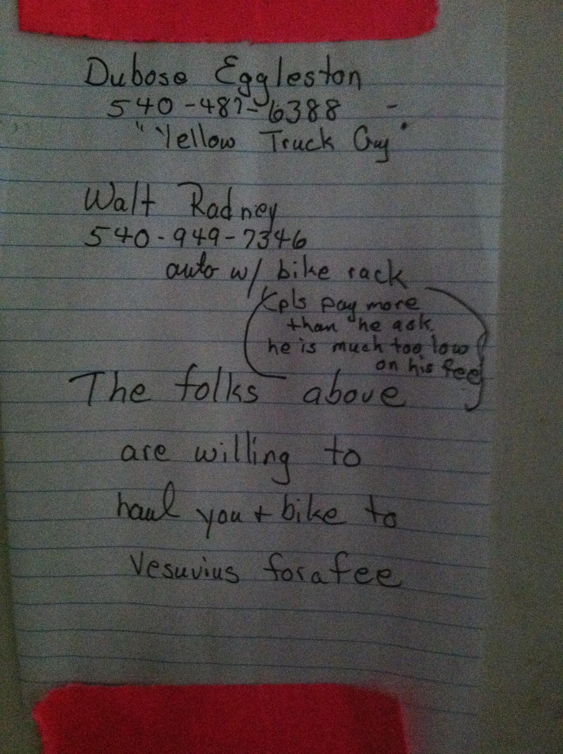 Sunday morning started out well. We left Charlottesville and headed on down the road to White Hall, Va. It was a magnificently beautiful ride. We stopped to attend service at Mt. Moriah United Methodist Church. Everyone was really friendly and welcoming. There sermon series was titled “We can!” We stayed for some refreshments after service and then headed on our way.