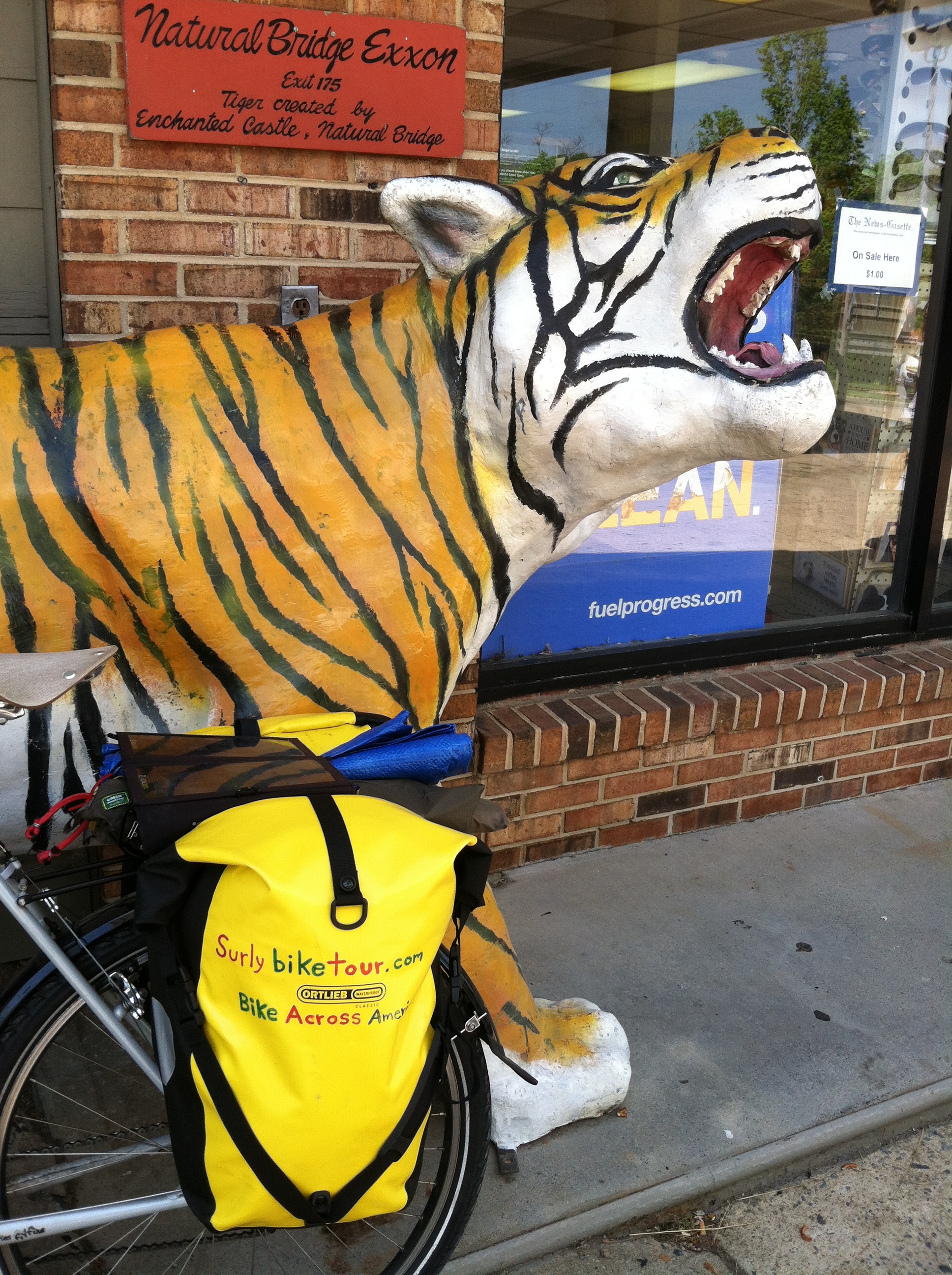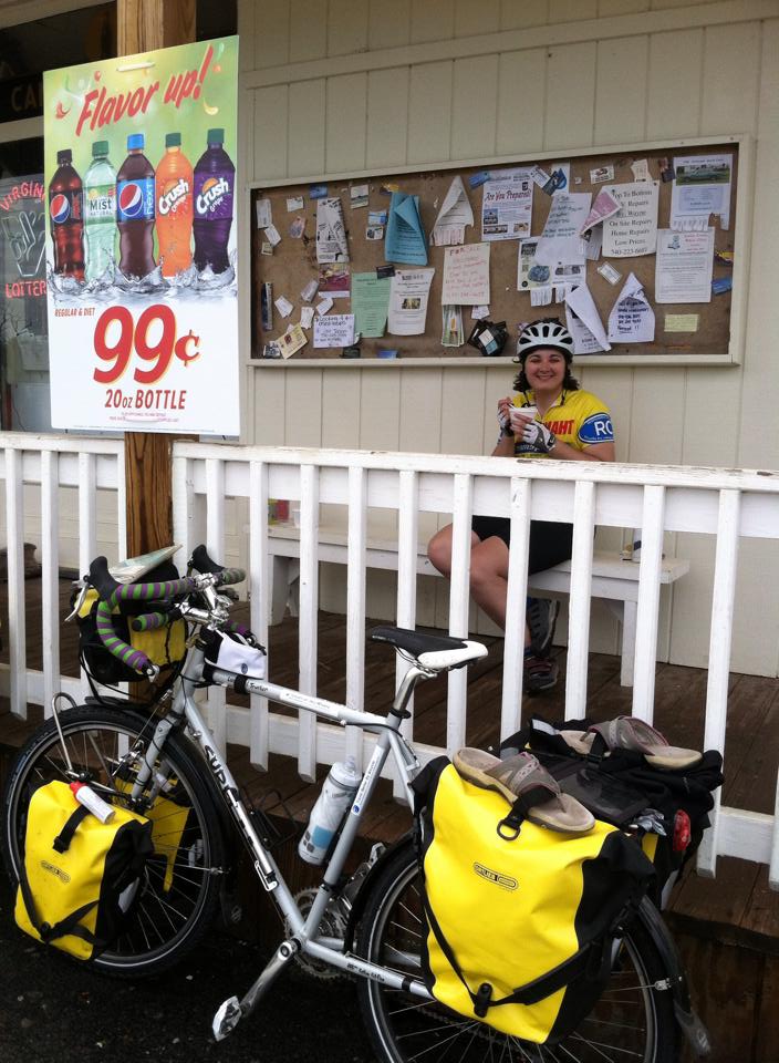 Shortly after leaving the Church we came upon a nice country store called “Wyants Store.” Many of the stops along the TransAm bicycle route have a book that touring cyclists sign when they visit. We signed the book. Phil got a coca-cola, we looked around, and then we left. As you will learn when you keep reading, not getting some real food was a serious oversight with very bad consequences.